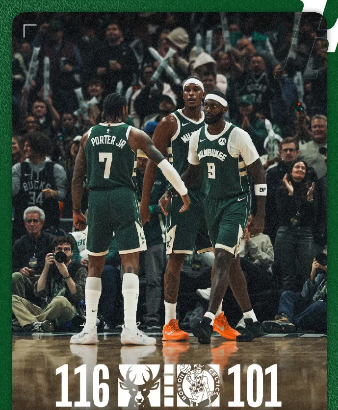 你的位置:久赌必输概率论基本定理 > 新闻动态 > 14分逆转,终结绿军5连胜! 字母缺阵,库兹马31+6,布朗空砍30分雄鹿今天在主场以116-101逆转战胜凯尔特人,终结了两连败,也终结了绿军的5连胜。雄鹿战绩来到11胜15负,暂时排在东部第十。绿军战绩变成15胜10负,和魔术打成平手,继高居东部第三。